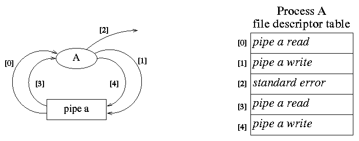 Figure 4.4 (page 142): The status of the process of Example 4.1 after the close(fd[0]) and close(fd[1]) have been executed.