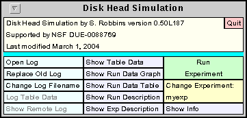 Before starting the simulator, edit the file diskheadconfig and change the user line to contain your name instead of New User. Start the simulator by executing rundisk.