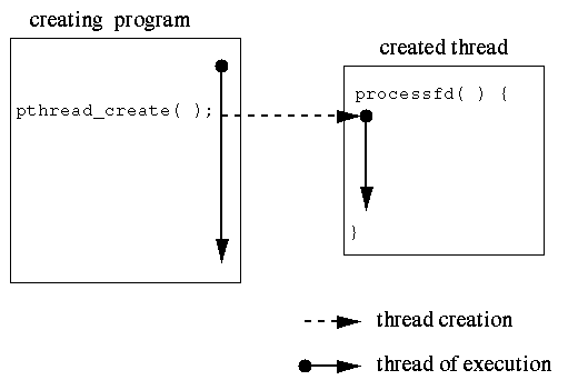 Figure 12.2 (page 412): Program that creates a new thread to execute processfd has two threads of execution.