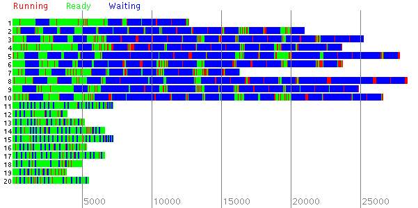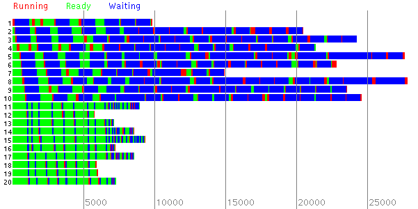 This is most readily seem by comparing the Gantt charts fo the two runs.