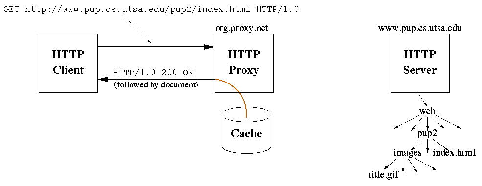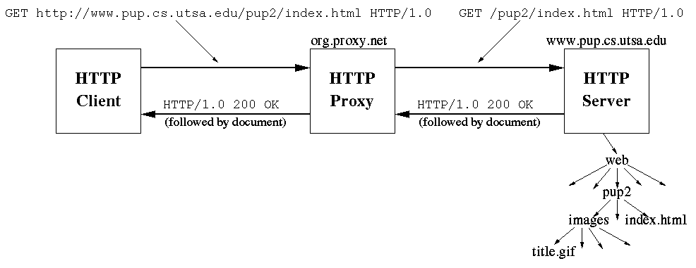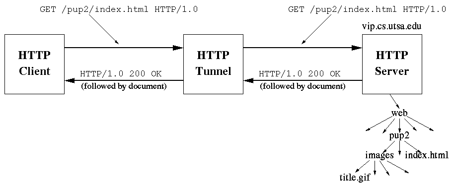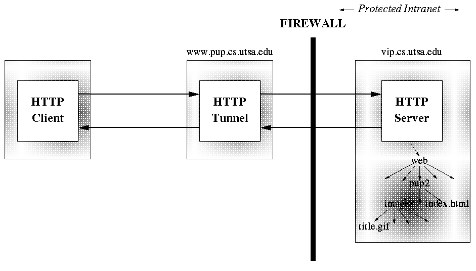 outside the firewall. The user agent does not even have to know of the existence of the machine vip.cs.utsa.edu. It believes that www.pup.cs.utsa.edu is