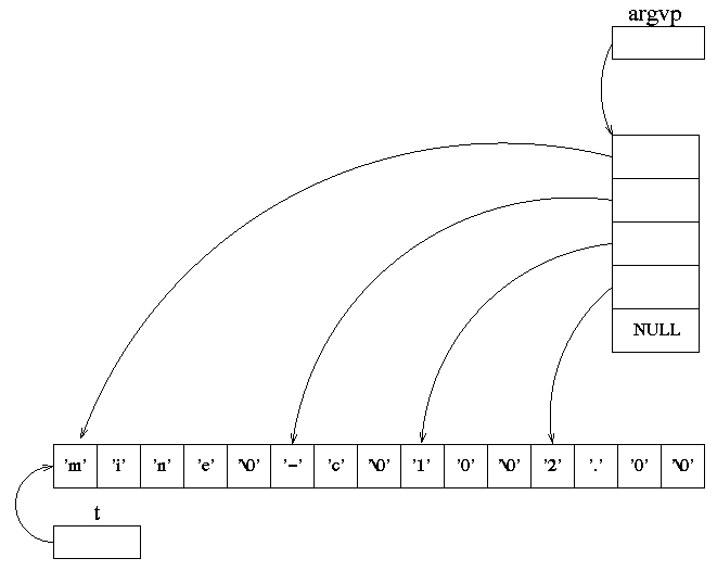 Figure 1.1 (page 18): The argv array for the call mine -c 10 2.0.